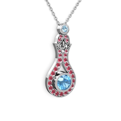 Akuamarin ve kök yakut 18 ayar beyaz altın kolye (40 cm beyaz altın rolo zincir)