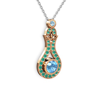 Akuamarin ve kök zümrüt 14 ayar rose altın kolye (40 cm beyaz altın rolo zincir)
