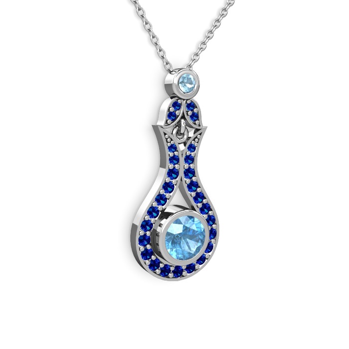 Akuamarin ve lab safir 14 ayar beyaz altın kolye (40 cm beyaz altın rolo zincir)