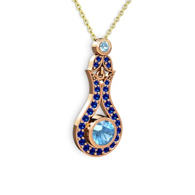 Akuamarin ve lab safir 8 ayar rose altın kolye (40 cm altın rolo zincir)