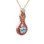 Akuamarin ve rodolit garnet 925 ayar rose altın kaplama gümüş kolye (40 cm altın rolo zincir)