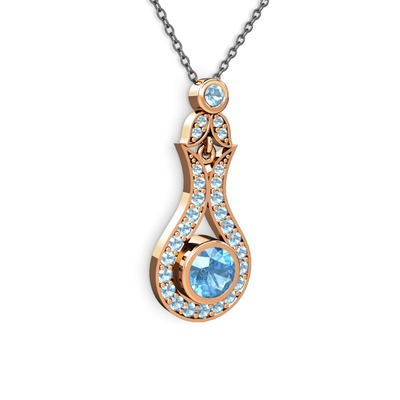 Akuamarin 925 ayar rose altın kaplama gümüş kolye (40 cm gümüş rolo zincir)