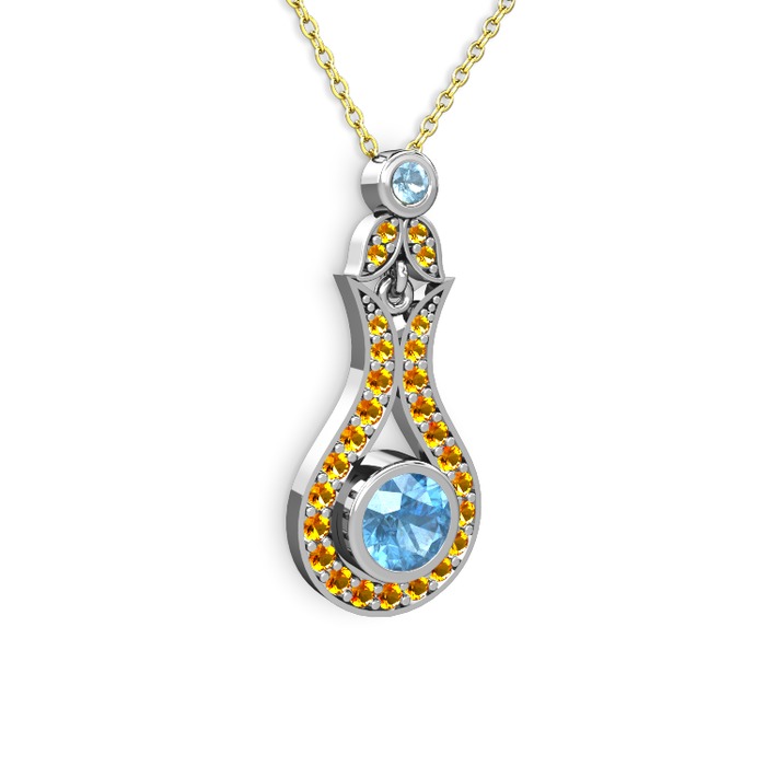 Akuamarin ve sitrin 8 ayar beyaz altın kolye (40 cm altın rolo zincir)