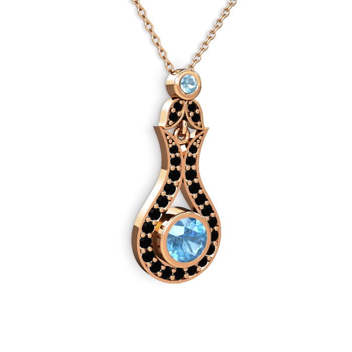 Akuamarin ve siyah zirkon 14 ayar rose altın kolye (40 cm gümüş rolo zincir)