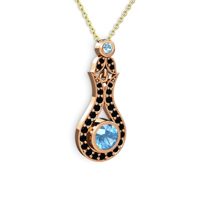 Akuamarin ve siyah zirkon 925 ayar rose altın kaplama gümüş kolye (40 cm gümüş rolo zincir)