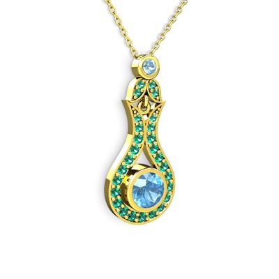 Akuamarin ve yeşil kuvars 925 ayar altın kaplama gümüş kolye (40 cm altın rolo zincir)