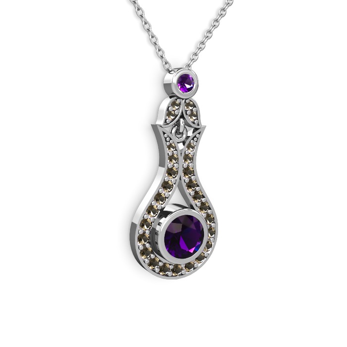 Ametist ve dumanlı kuvars 18 ayar beyaz altın kolye (40 cm beyaz altın rolo zincir)