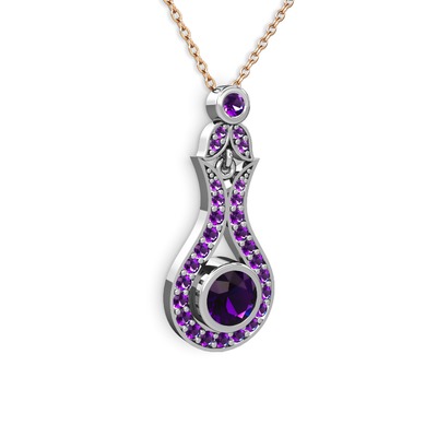 Ametist 925 ayar gümüş kolye (40 cm rose altın rolo zincir)