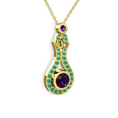 Ametist ve kök zümrüt 18 ayar altın kolye (40 cm altın rolo zincir)