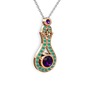 Ametist ve kök zümrüt 8 ayar rose altın kolye (40 cm beyaz altın rolo zincir)
