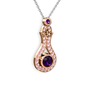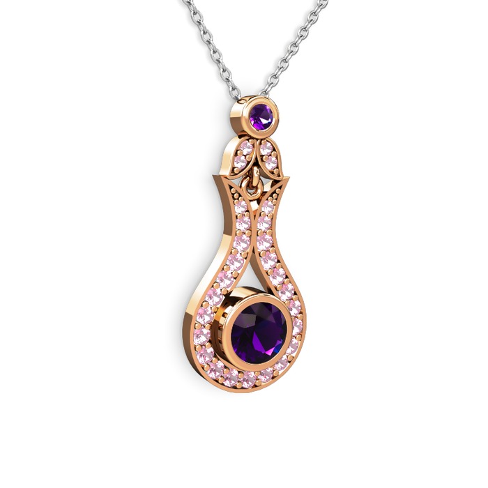 Ametist ve pembe kuvars 8 ayar rose altın kolye (40 cm beyaz altın rolo zincir)