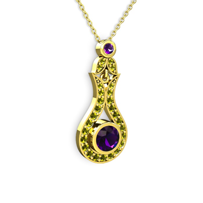 Ametist ve peridot 14 ayar altın kolye (40 cm altın rolo zincir)