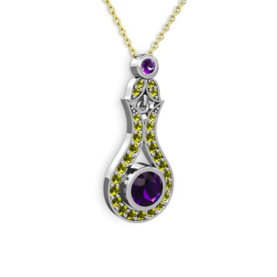 Ametist ve peridot 8 ayar beyaz altın kolye (40 cm gümüş rolo zincir)