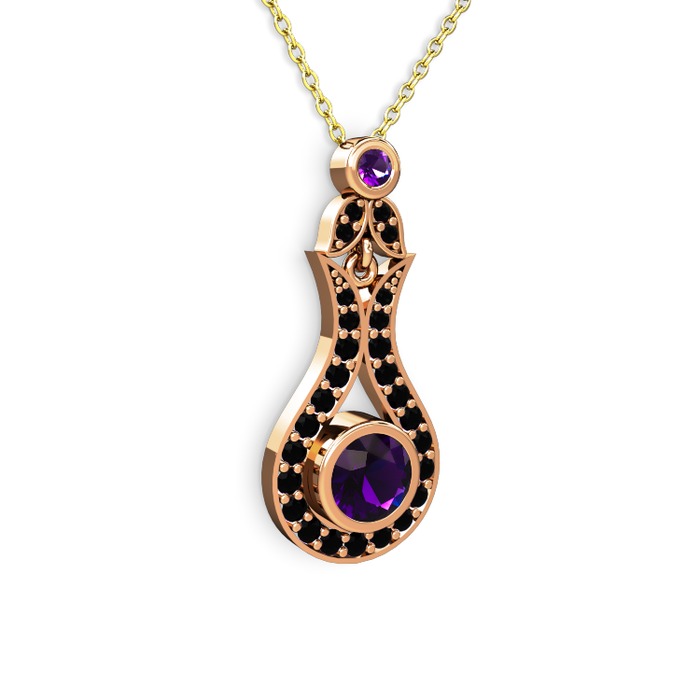 Ametist ve siyah zirkon 18 ayar rose altın kolye (40 cm altın rolo zincir)