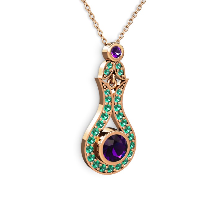 Ametist ve yeşil kuvars 18 ayar rose altın kolye (40 cm rose altın rolo zincir)