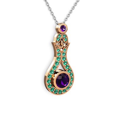 Ametist ve yeşil kuvars 8 ayar rose altın kolye (40 cm beyaz altın rolo zincir)