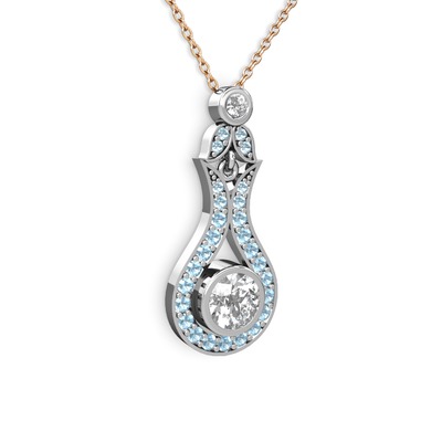Beyaz zirkon ve akuamarin 14 ayar beyaz altın kolye (40 cm rose altın rolo zincir)