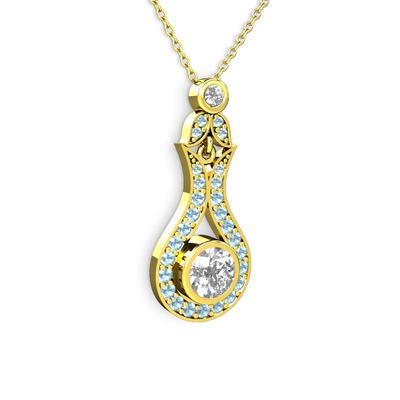 Beyaz zirkon ve akuamarin 925 ayar altın kaplama gümüş kolye (40 cm gümüş rolo zincir)