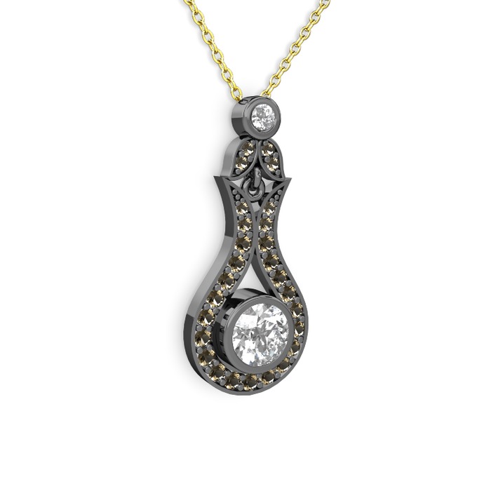 Beyaz zirkon ve dumanlı kuvars 925 ayar siyah rodyum kaplama gümüş kolye (40 cm gümüş rolo zincir)