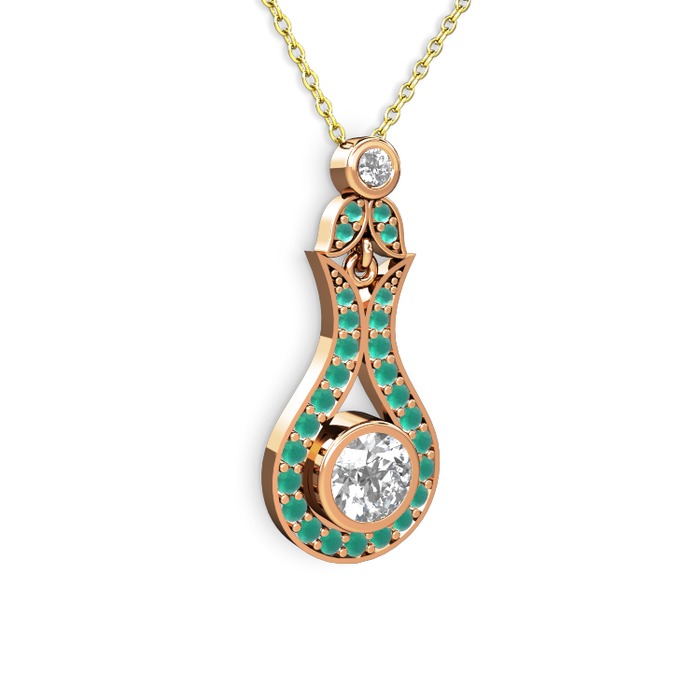 Beyaz zirkon ve kök zümrüt 18 ayar rose altın kolye (40 cm altın rolo zincir)