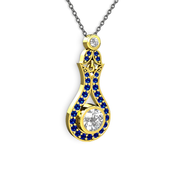 Beyaz zirkon ve lab safir 14 ayar altın kolye (40 cm gümüş rolo zincir)