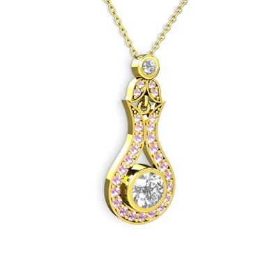 Beyaz zirkon ve pembe kuvars 14 ayar altın kolye (40 cm altın rolo zincir)