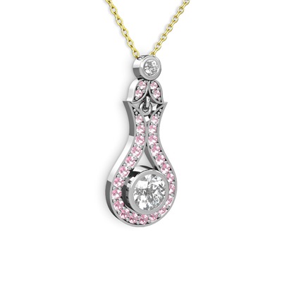 Beyaz zirkon ve pembe kuvars 8 ayar beyaz altın kolye (40 cm altın rolo zincir)