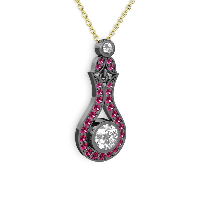 Beyaz zirkon ve rodolit garnet 925 ayar siyah rodyum kaplama gümüş kolye (40 cm altın rolo zincir)