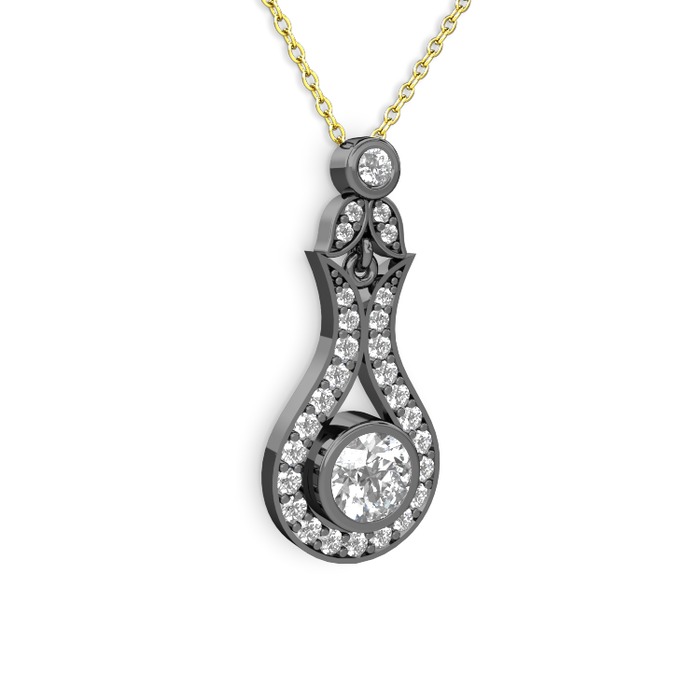 Beyaz zirkon 925 ayar siyah rodyum kaplama gümüş kolye (40 cm gümüş rolo zincir)