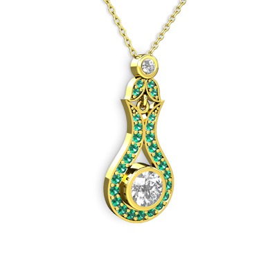 Beyaz zirkon ve yeşil kuvars 8 ayar altın kolye (40 cm altın rolo zincir)