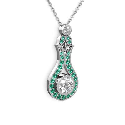 Beyaz zirkon ve yeşil kuvars 925 ayar gümüş kolye (40 cm beyaz altın rolo zincir)