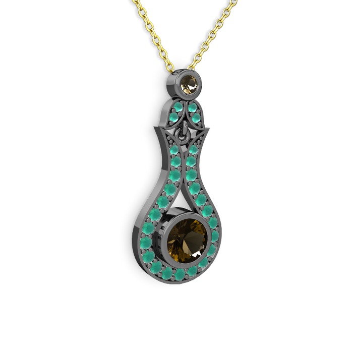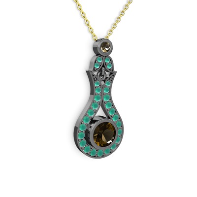 Dumanlı kuvars ve kök zümrüt 925 ayar siyah rodyum kaplama gümüş kolye (40 cm altın rolo zincir)
