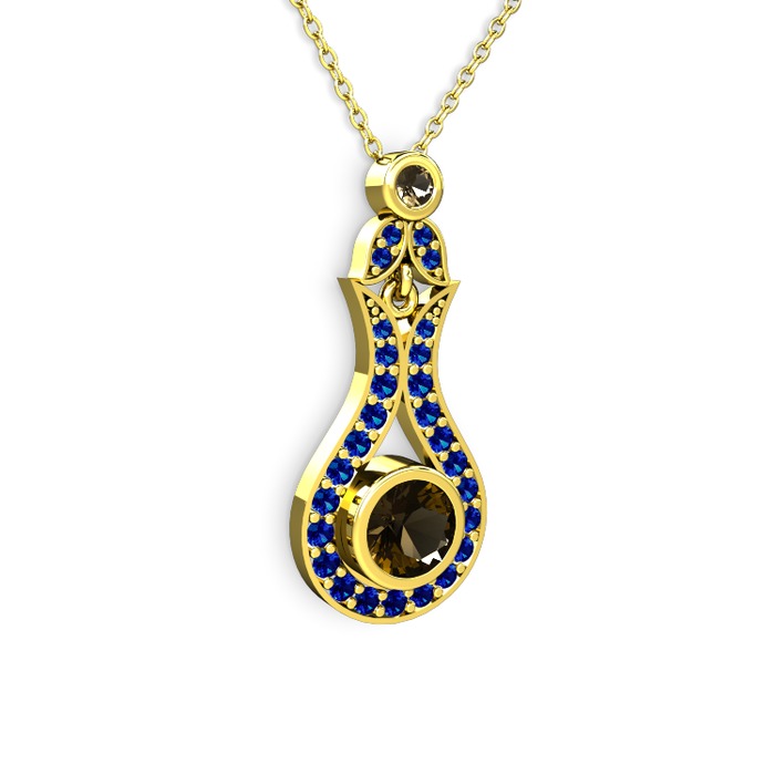 Dumanlı kuvars ve lab safir 8 ayar altın kolye (40 cm altın rolo zincir)
