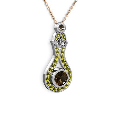 Dumanlı kuvars ve peridot 925 ayar gümüş kolye (40 cm rose altın rolo zincir)