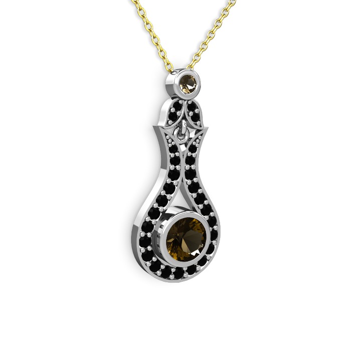 Dumanlı kuvars ve siyah zirkon 18 ayar beyaz altın kolye (40 cm gümüş rolo zincir)