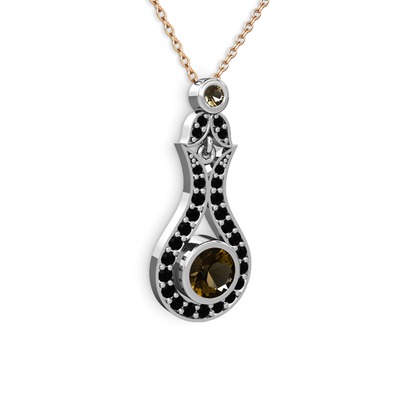 Dumanlı kuvars ve siyah zirkon 8 ayar beyaz altın kolye (40 cm gümüş rolo zincir)