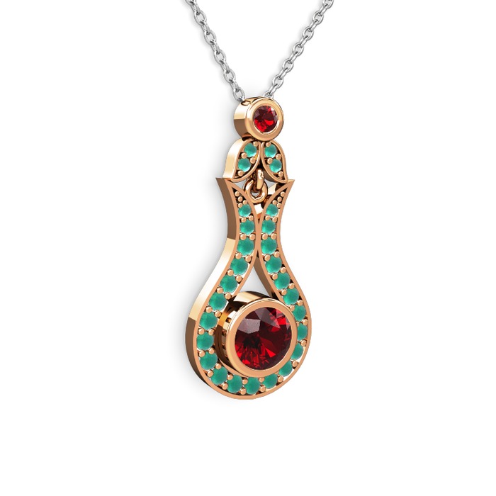 Garnet ve kök zümrüt 8 ayar rose altın kolye (40 cm beyaz altın rolo zincir)