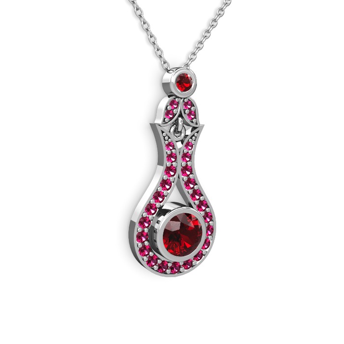 Garnet ve rodolit garnet 925 ayar gümüş kolye (40 cm beyaz altın rolo zincir)