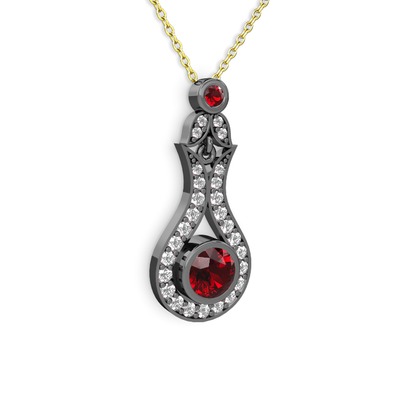 Garnet ve swarovski 925 ayar siyah rodyum kaplama gümüş kolye (40 cm gümüş rolo zincir)