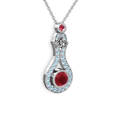 Kök yakut ve akuamarin 14 ayar beyaz altın kolye (40 cm beyaz altın rolo zincir)