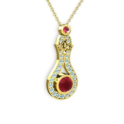 Kök yakut ve akuamarin 925 ayar altın kaplama gümüş kolye (40 cm altın rolo zincir)
