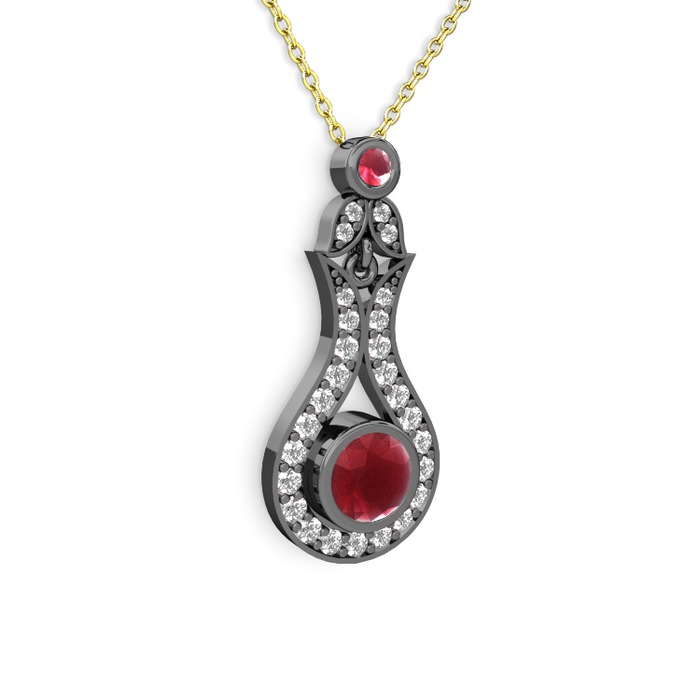 Kök yakut ve beyaz zirkon 925 ayar siyah rodyum kaplama gümüş kolye (40 cm altın rolo zincir)