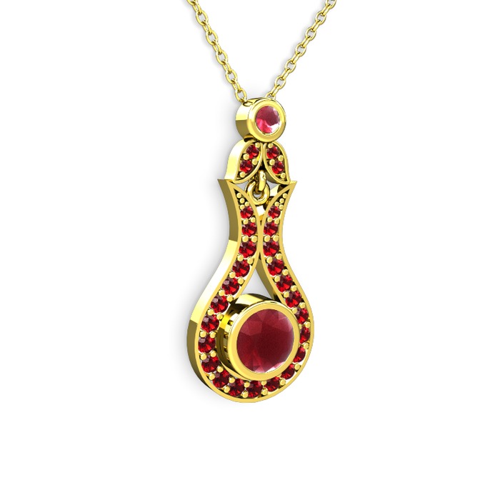 Kök yakut ve garnet 14 ayar altın kolye (40 cm altın rolo zincir)