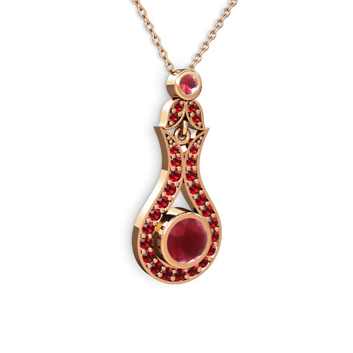 Kök yakut ve garnet 18 ayar rose altın kolye (40 cm rose altın rolo zincir)