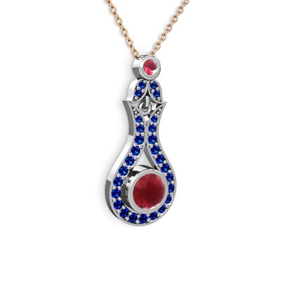 Kök yakut ve lab safir 925 ayar gümüş kolye (40 cm rose altın rolo zincir)