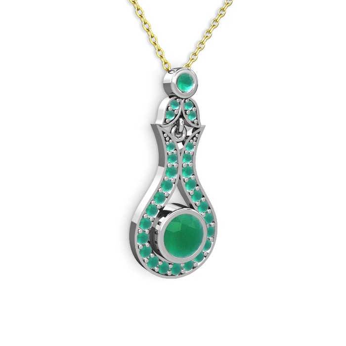 Kök zümrüt 8 ayar beyaz altın kolye (40 cm gümüş rolo zincir)