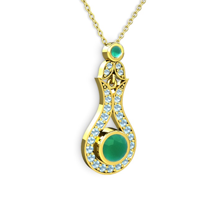 Kök zümrüt ve akuamarin 18 ayar altın kolye (40 cm gümüş rolo zincir)