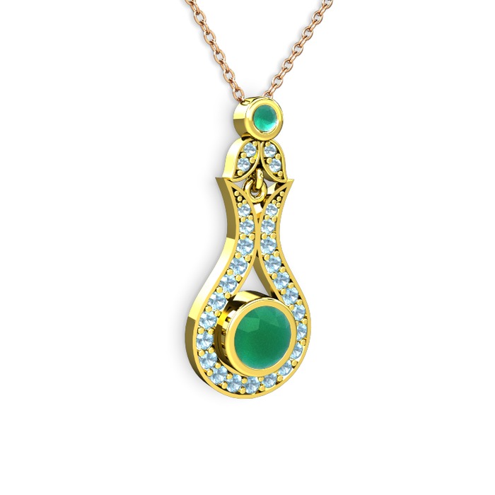 Kök zümrüt ve akuamarin 925 ayar altın kaplama gümüş kolye (40 cm rose altın rolo zincir)