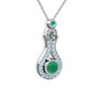 Kök zümrüt ve akuamarin 925 ayar gümüş kolye (40 cm beyaz altın rolo zincir)