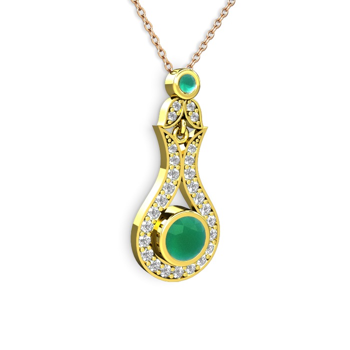 Kök zümrüt ve beyaz zirkon 925 ayar altın kaplama gümüş kolye (40 cm rose altın rolo zincir)